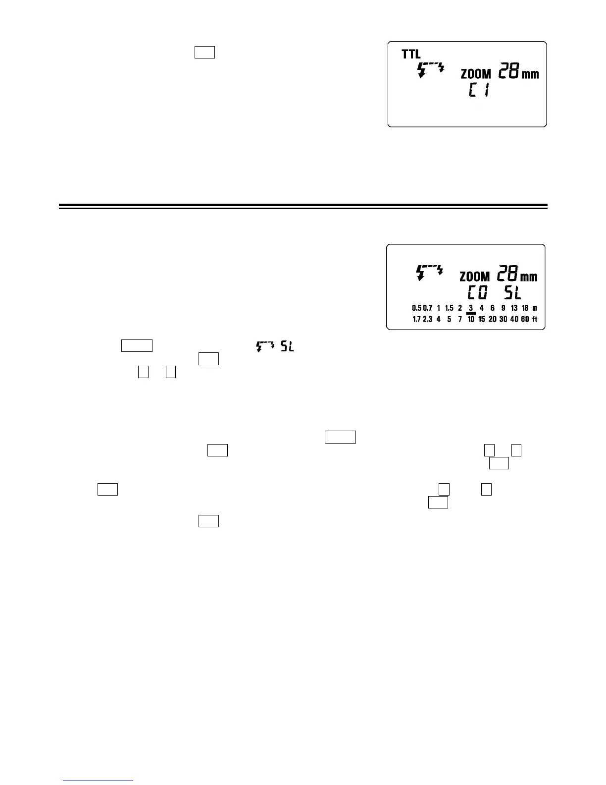 6. Druk meerdere malen op de SEL toets om de flitsvermogen indicator te laten knipperen