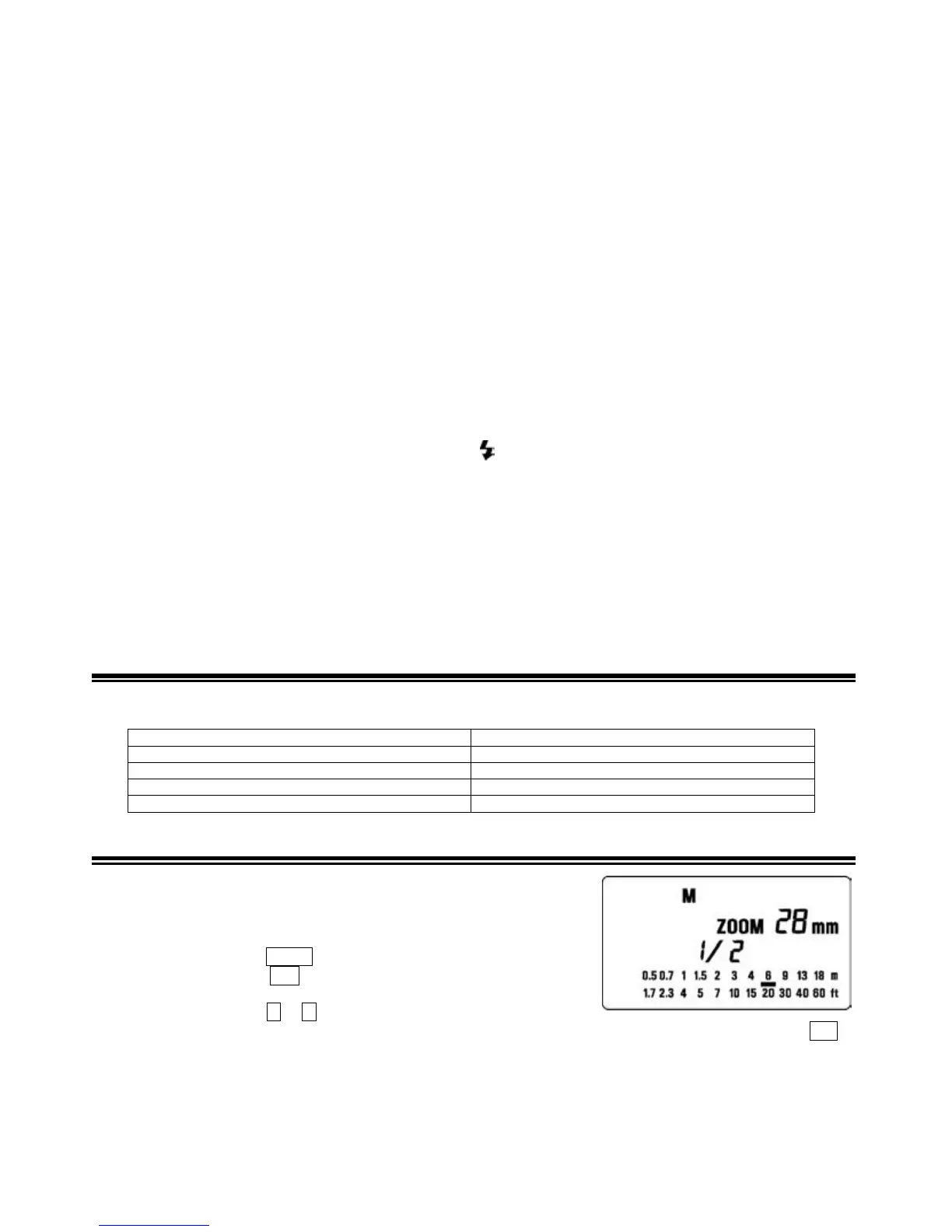 Le flash calcule et détermine la distance appropriée en utilisant cette formule. (voir le tableau 1 en dernière page)