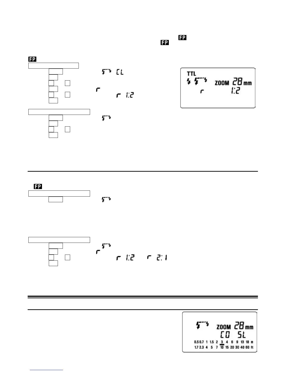 ◆ vil vises i displayet, men det er ikke muligt at tage billeder med synkronisering på hurtig lukkertid.