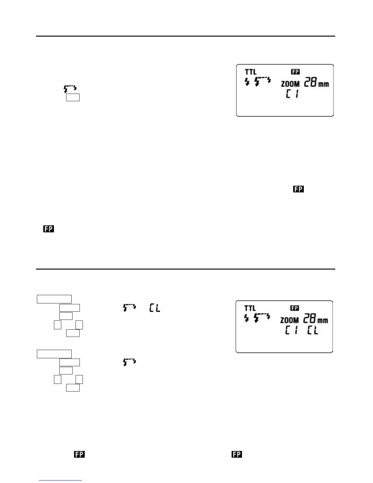 Maxxum / Dynax 7, Maxxum / Dynax 5 以外之相機,但是閃光燈的液晶顯示屏上會有如下之顯