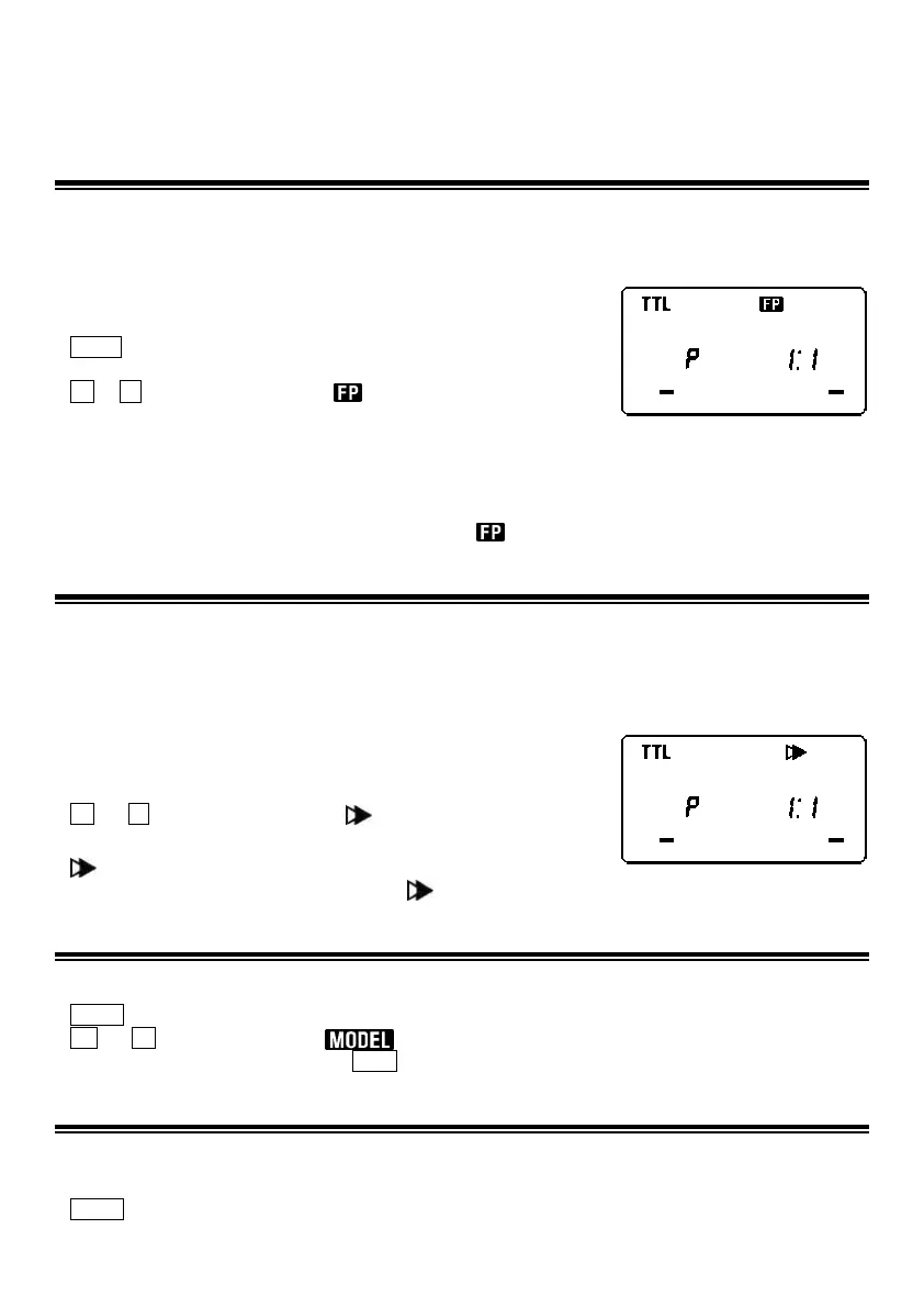 MODE 버튼을 눌러 플래시 모드를 선택합니다. (P-TTL, 무선