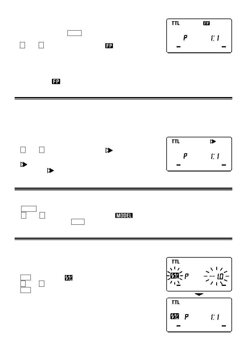 ② フラッシュのモードを MODE ボタンで選択します。(P-TTL、ワイヤ
