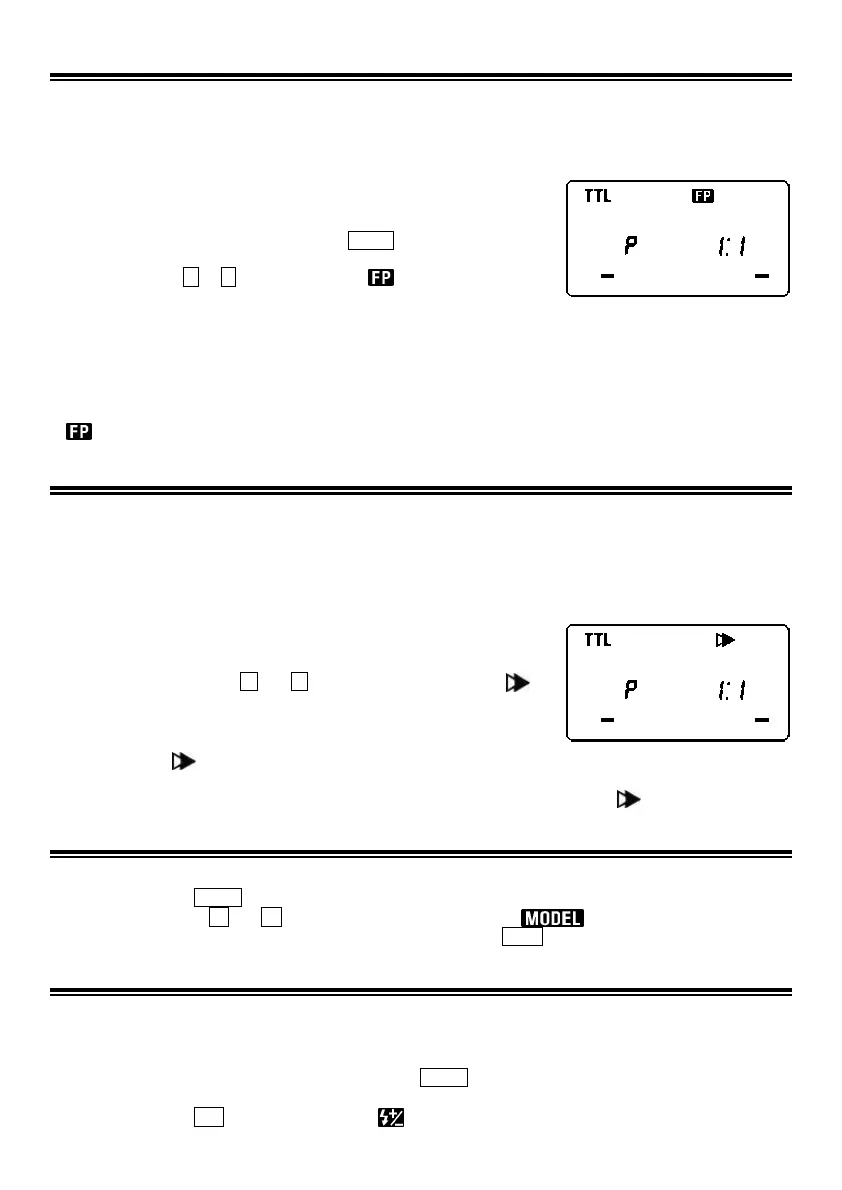 1. Escolha o modo de flash, pressionando o botão MODE (pode usar os modos P-TTL, HIGH SPEED