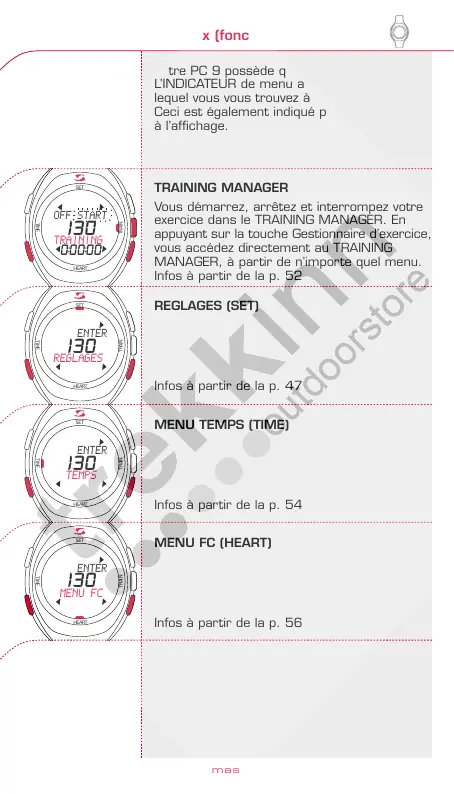 1.4 Les menus principaux (fonctions) 1.5 Effectuer les réglages