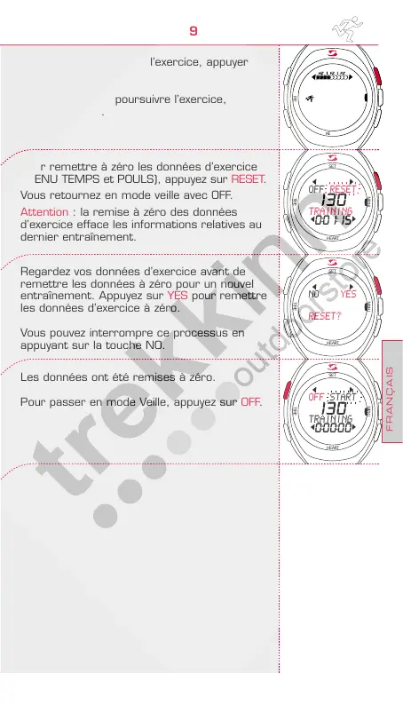 (MENU TEMPS et POULS), appuyez sur RESET.