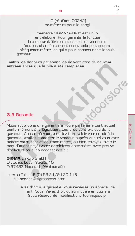 pour le cardiofréquence-mètre et pour la sangle de poitrine.