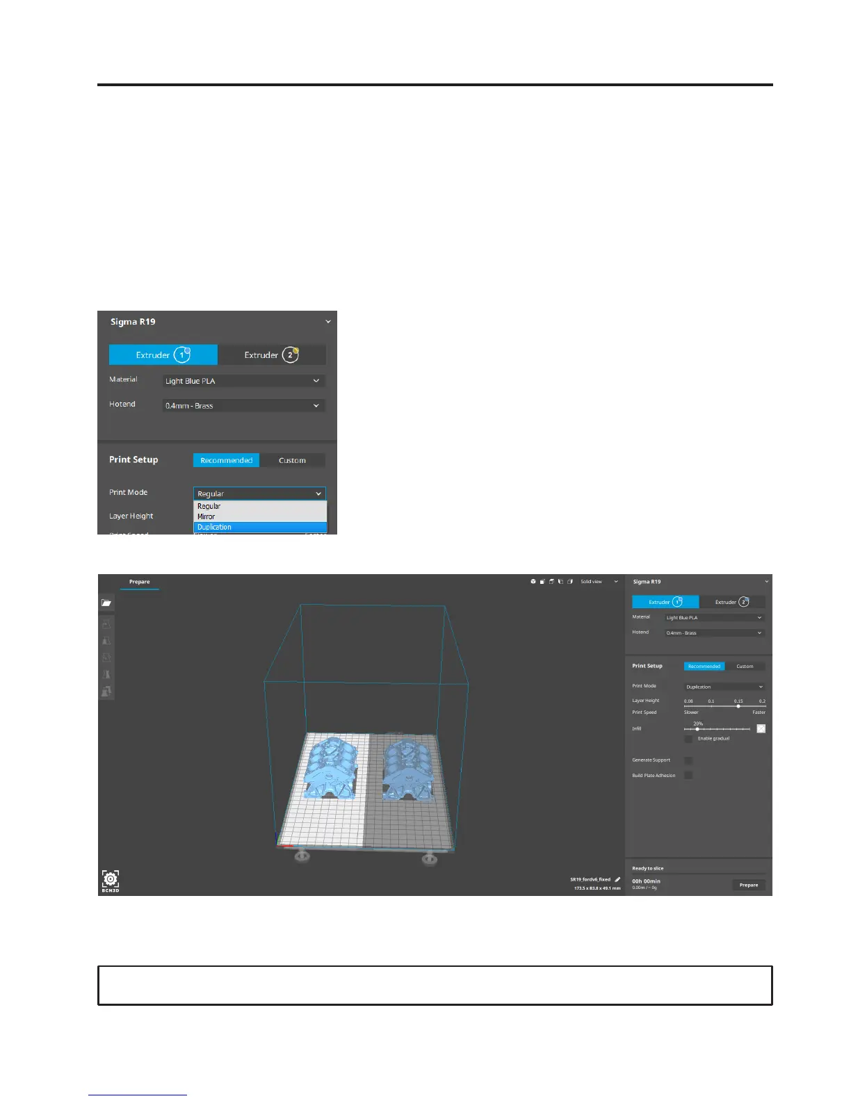 4. Note how the available printing volume is reduced