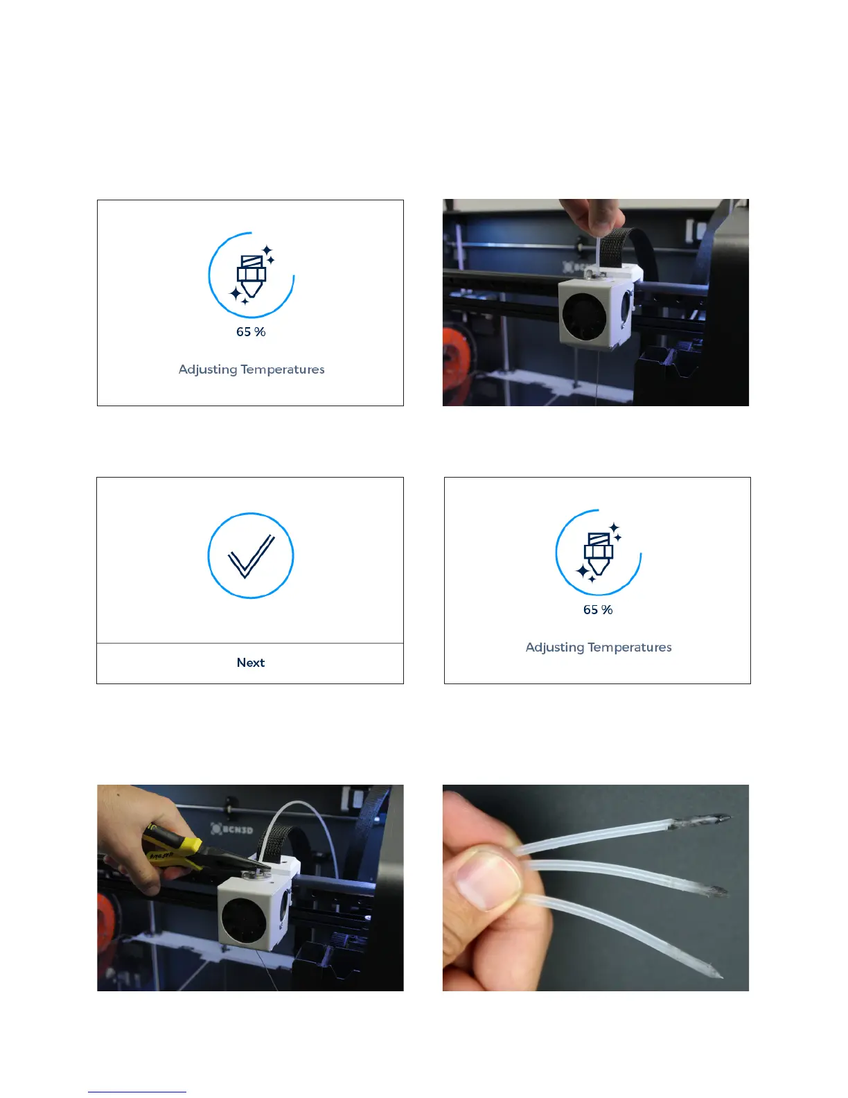 6. Press NEXT and keep pushing until new notice. 7. Wait while the hotend cools down.