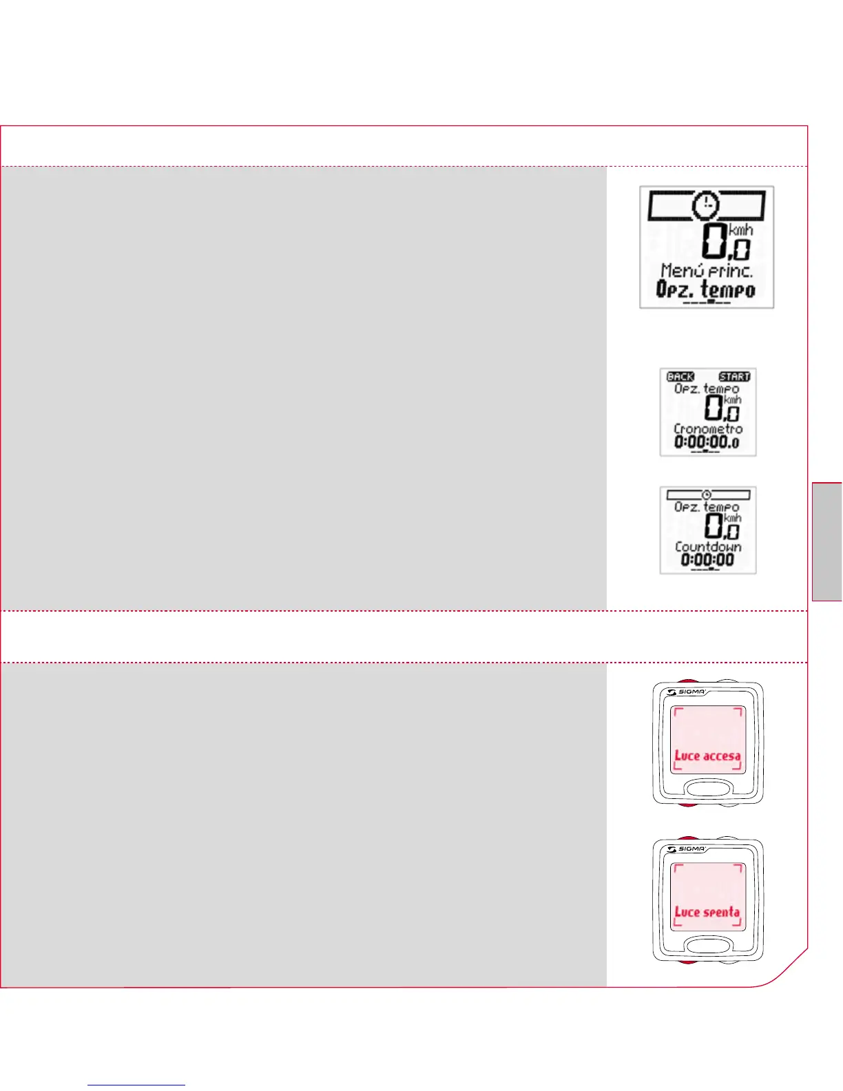 alto a destra. Per riazzerare il countdown premere il tasto a sinistra.