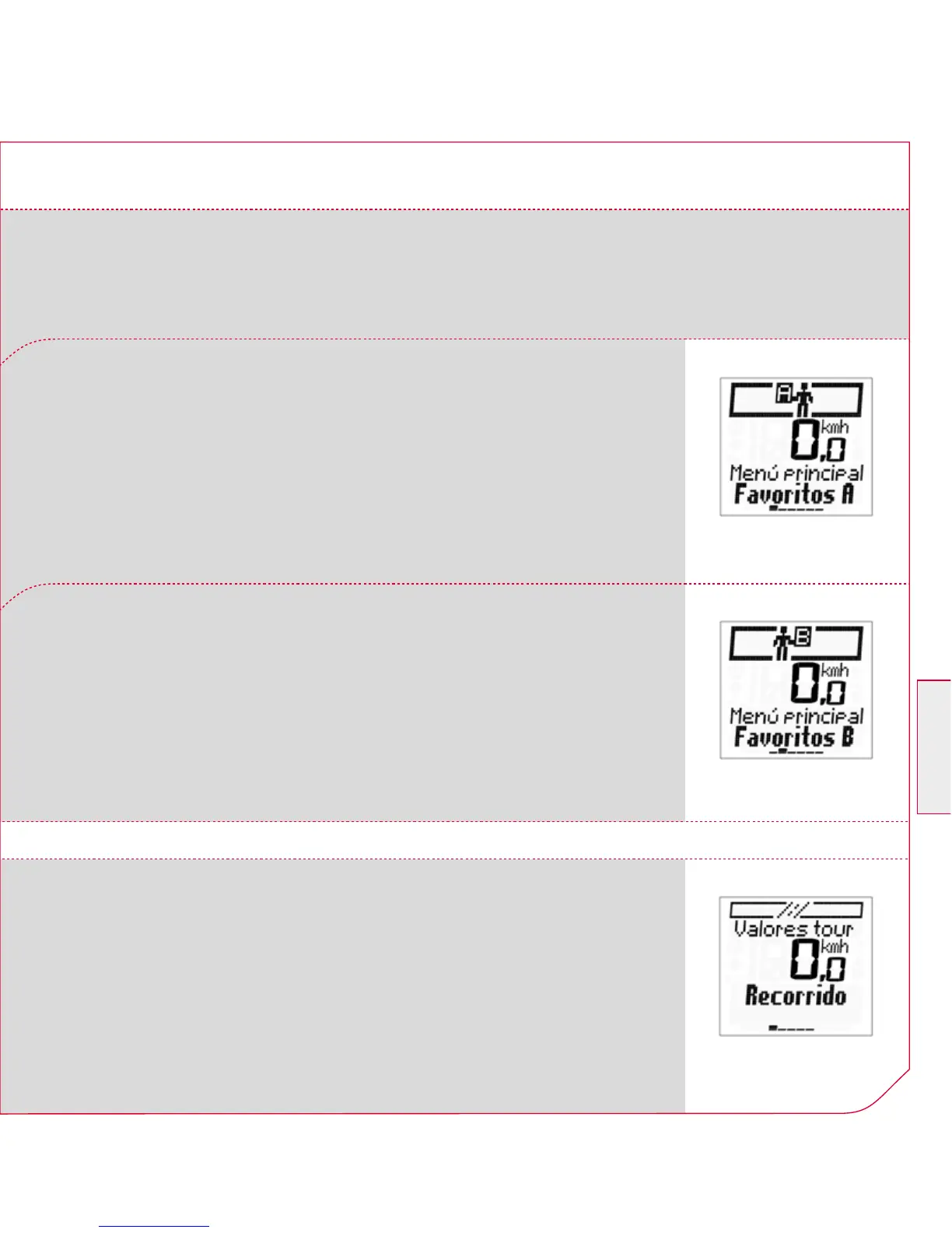 Todas las funciones de bicicleta se encuentran en: “Valores tour/