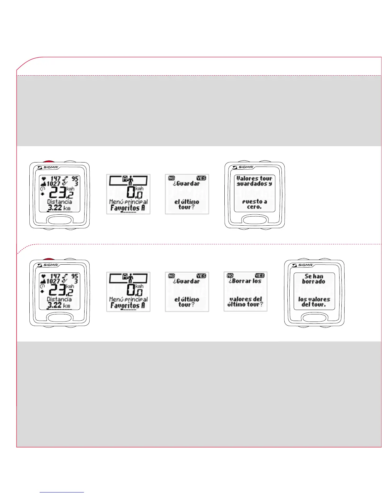 y “Valores tour”. Para borrar/almacenar