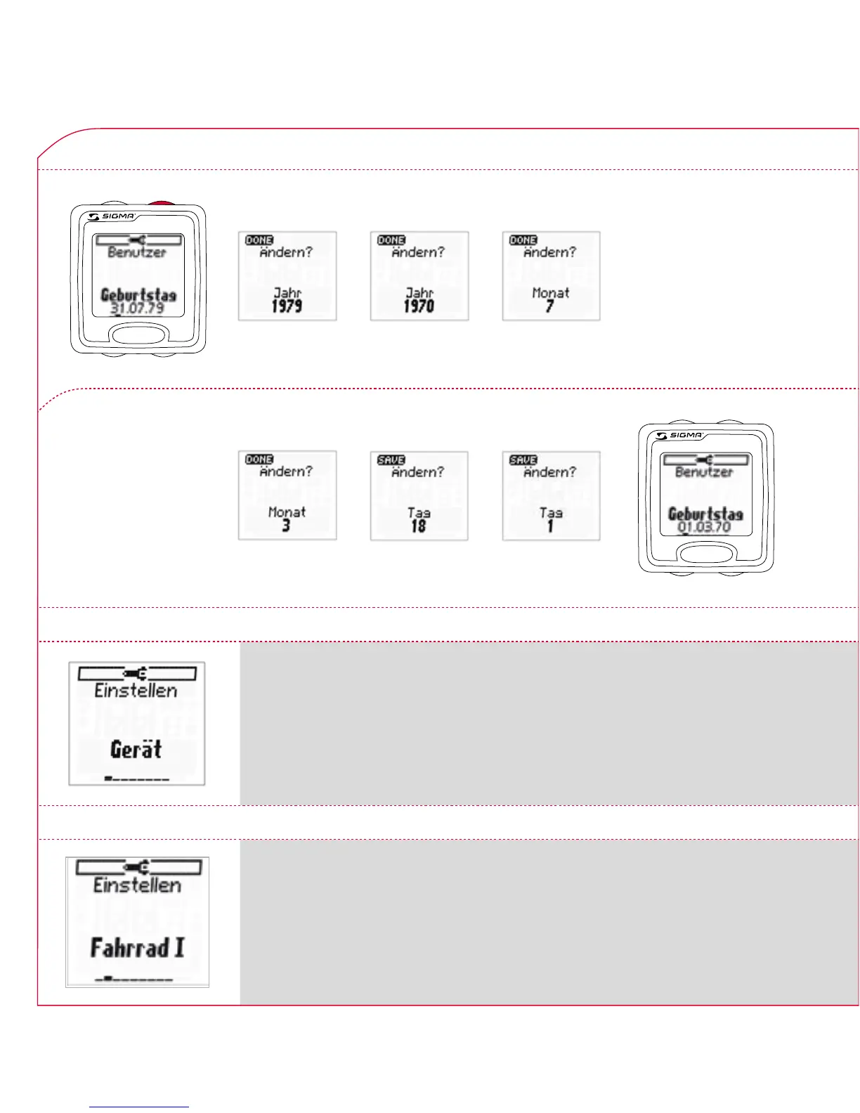 Sigma ROX 8.1 - Einstellen;Benutzer;Geburtstag; Gerät; Fahrrad I
