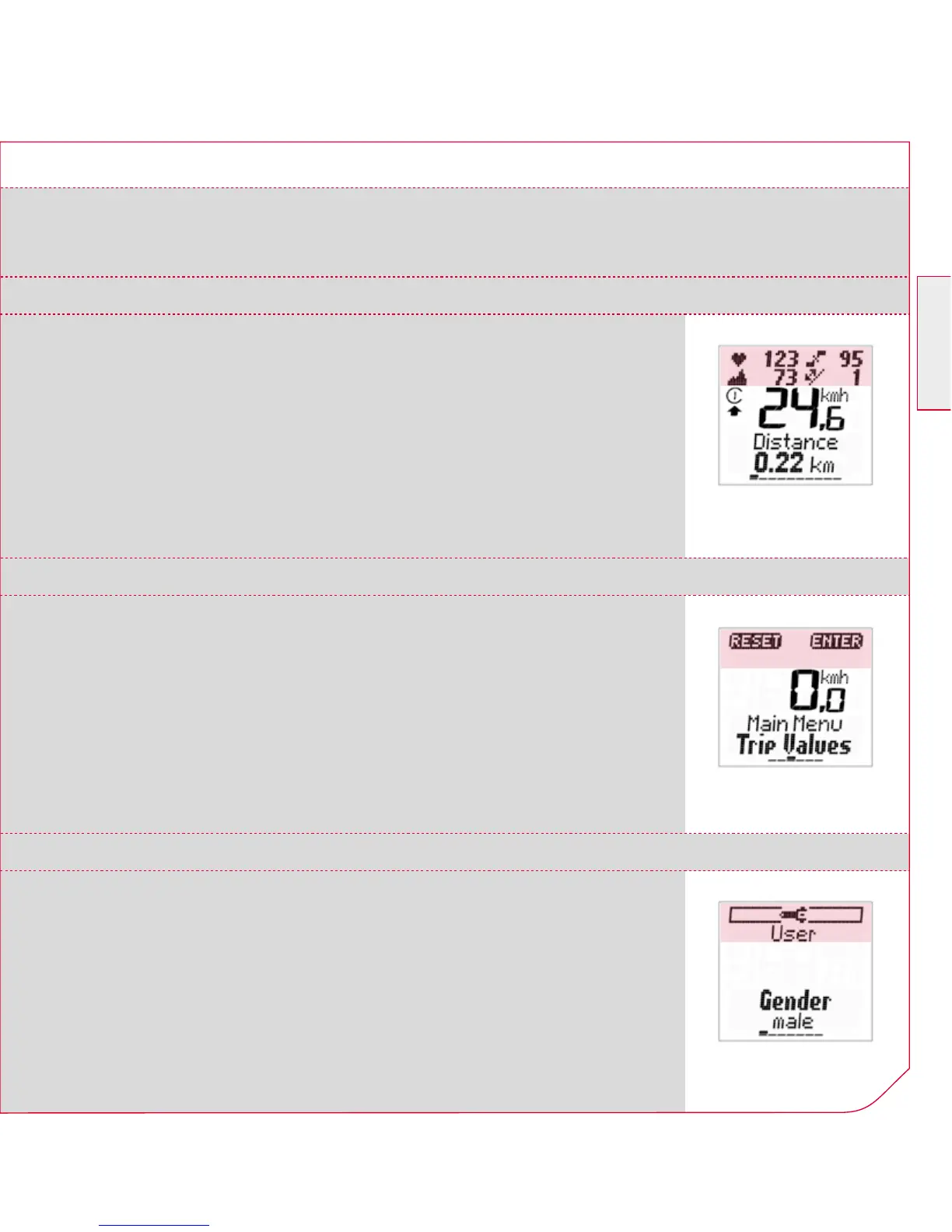 k The current cadence (only if the cadence transmitter is fitted)
