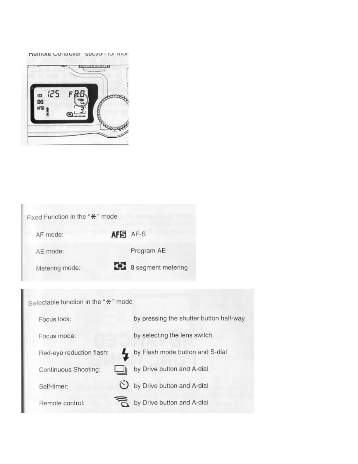 FIXED AND SELECTABLE FUNCTIONS IN THE * MODE