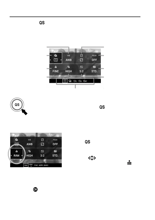 When the camera is in the Still Image Mode, the Quick Set