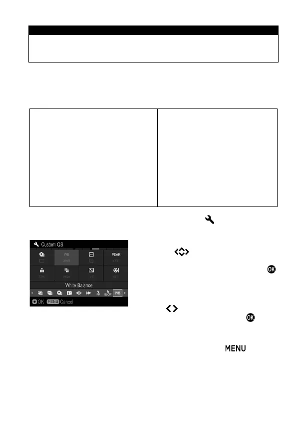 The function of the Quick Set menu can be set from [ Camera Settings]