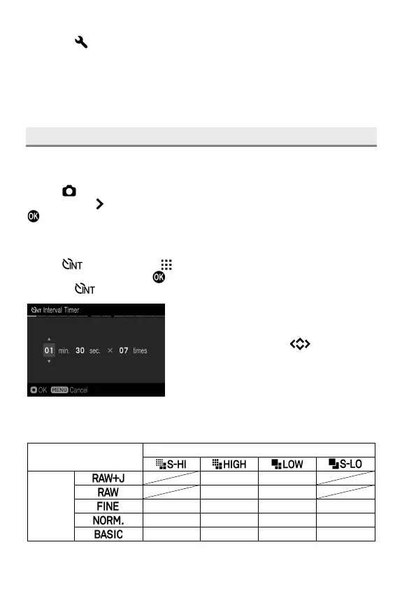 Select [ Capture Settings] (P. 30) → [Drive Mode] → [Interval timer],