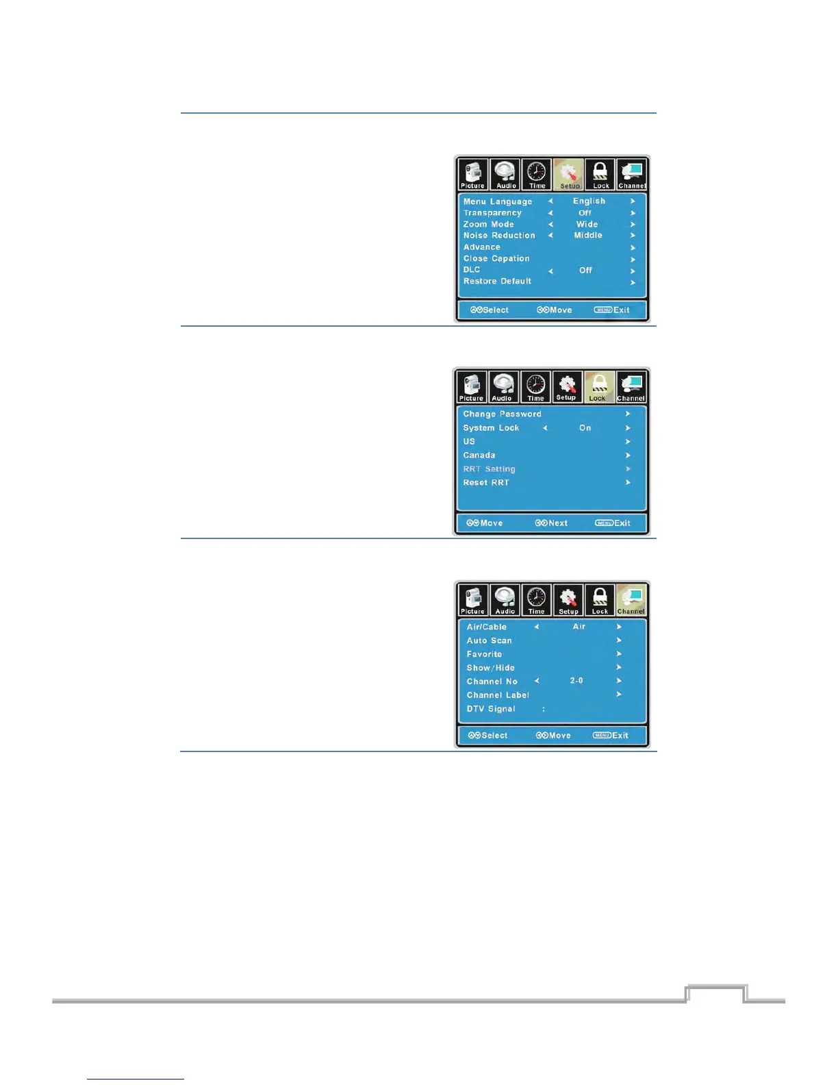 Allowsyoutosetupavarietyoflockoptions.(SelectTVsource)