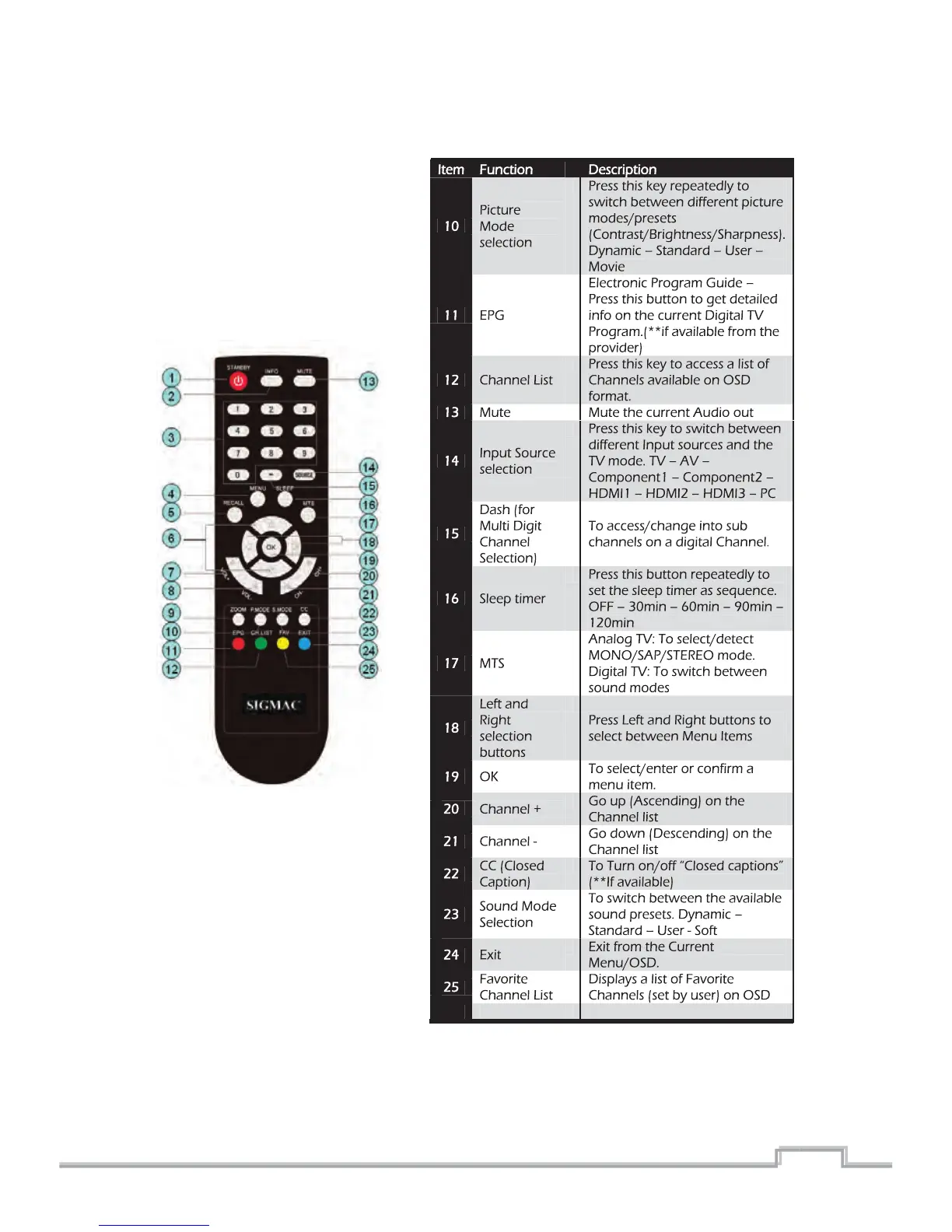Sigmac NE42AB - Remote Functions; Remote Control Functions