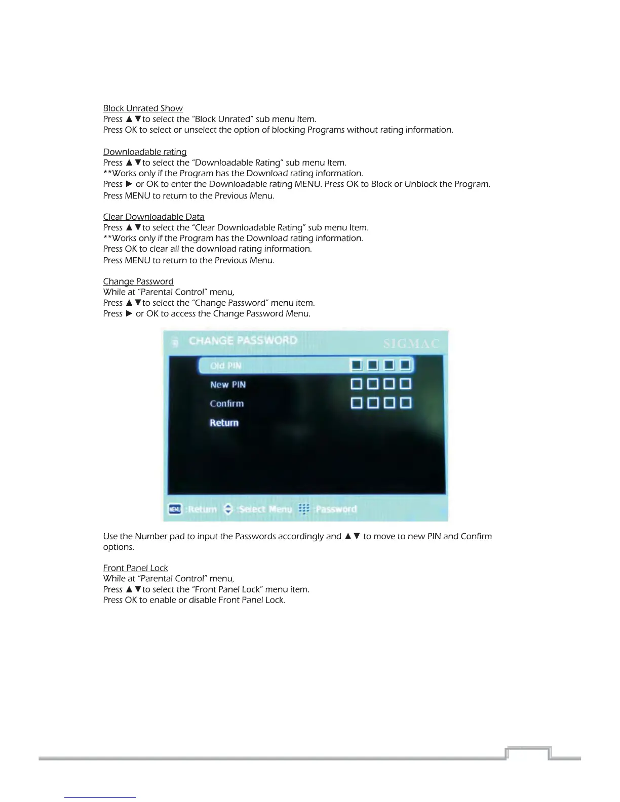 Sigmac NE42AB - Lock Parental Control; Parental Lock Function; V-Chip; V-Chip Settings