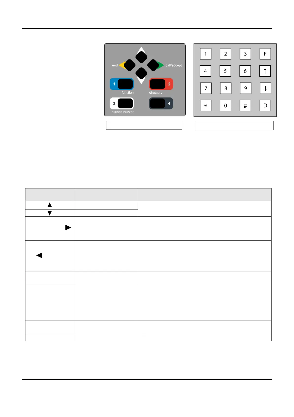 and = Scroll Up/Down, F = FUNCTION, = CALL/ACCEPT, # = END, D = DIRECTORY