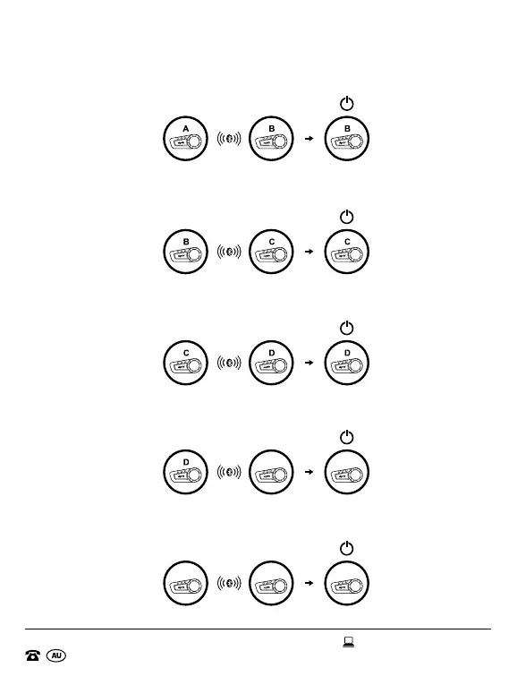 3. Next, pair headsets C and D together; turn off headset D and leave