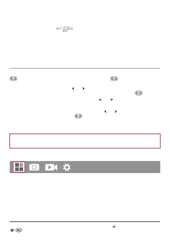 To access the variety of settings on the Wildlife Camera, in SETUP mode, press the