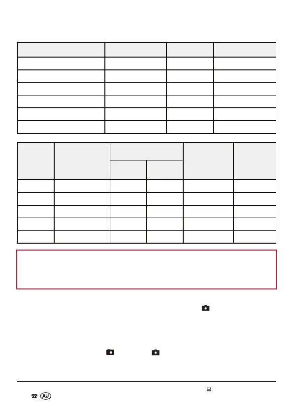 Camera default settings for the 8GB micro SD card (supplied). The quantity of