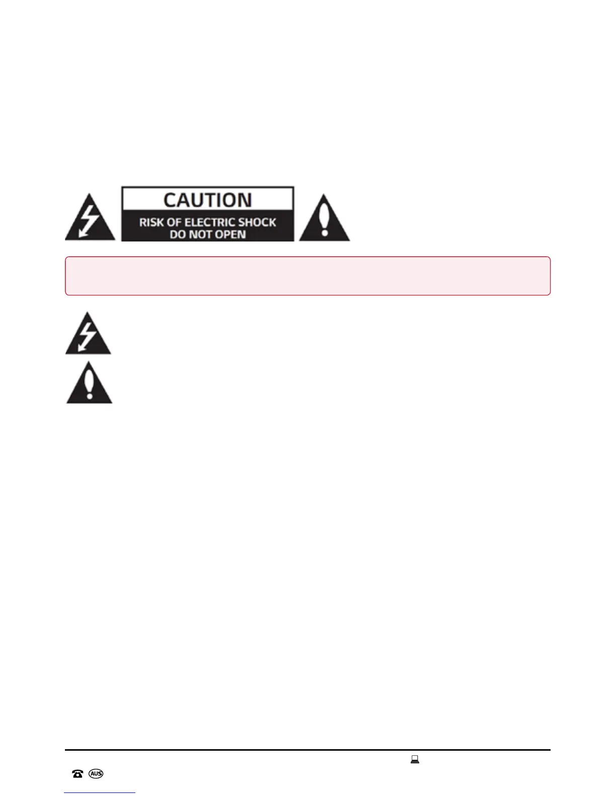 WARNING: To reduce the risk of electric shock do not remove cover (or back). No user-