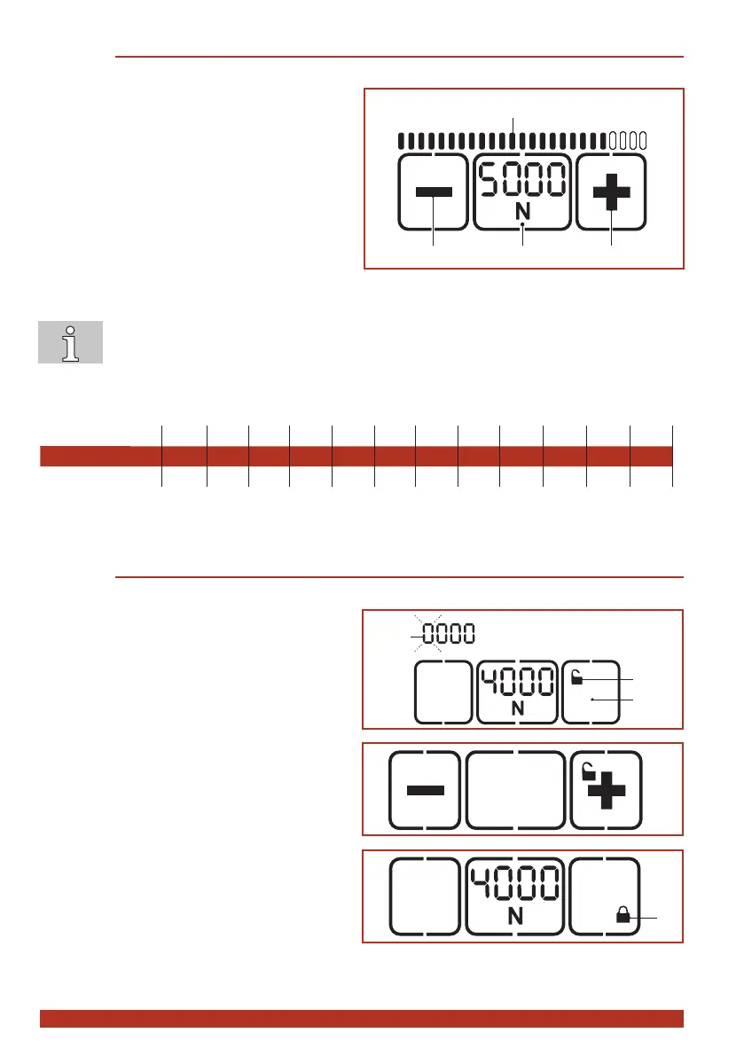 The set tension force is displayed continuously when the tool is ready for operation.