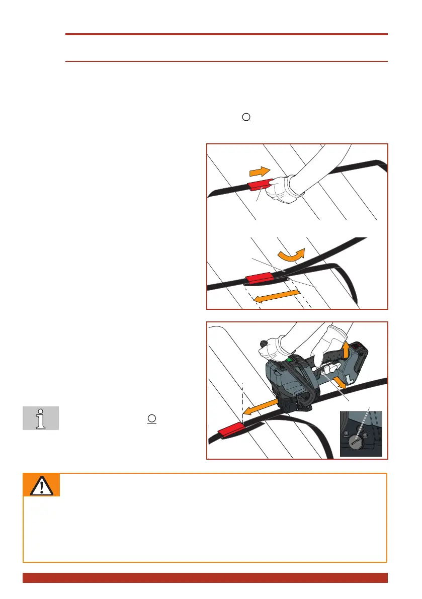 ► Insert the tool over the strap coming from the