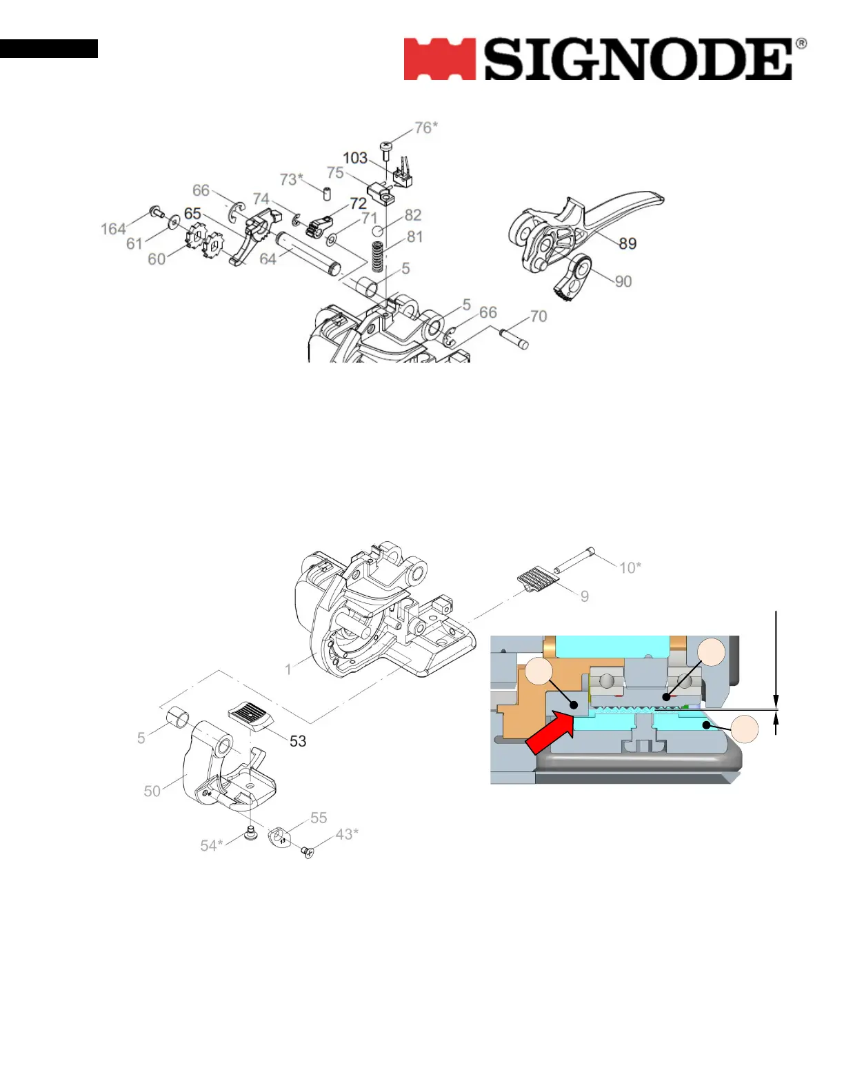 The Blocking Pawl (pos. 65) prevents the tension gear from turning backwards during tensioning. After