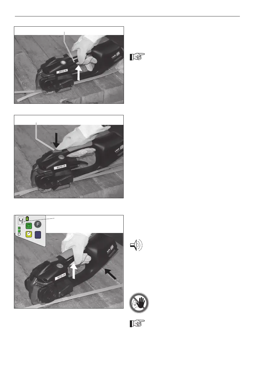 – Swing the tool away from the strapping backwards and