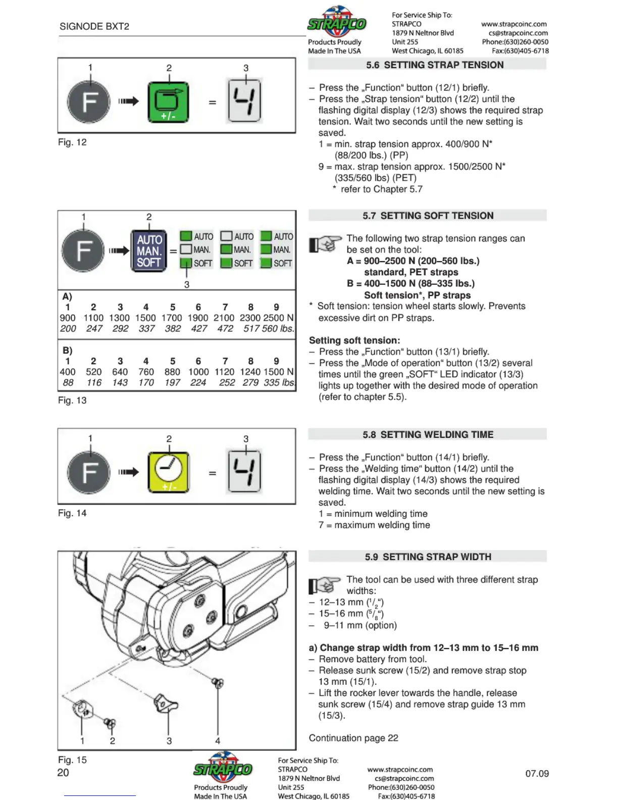 Signode BXT2 - Setting Strap Tension; Setting Soft Tension; Setting Welding Time; Setting Strap Width