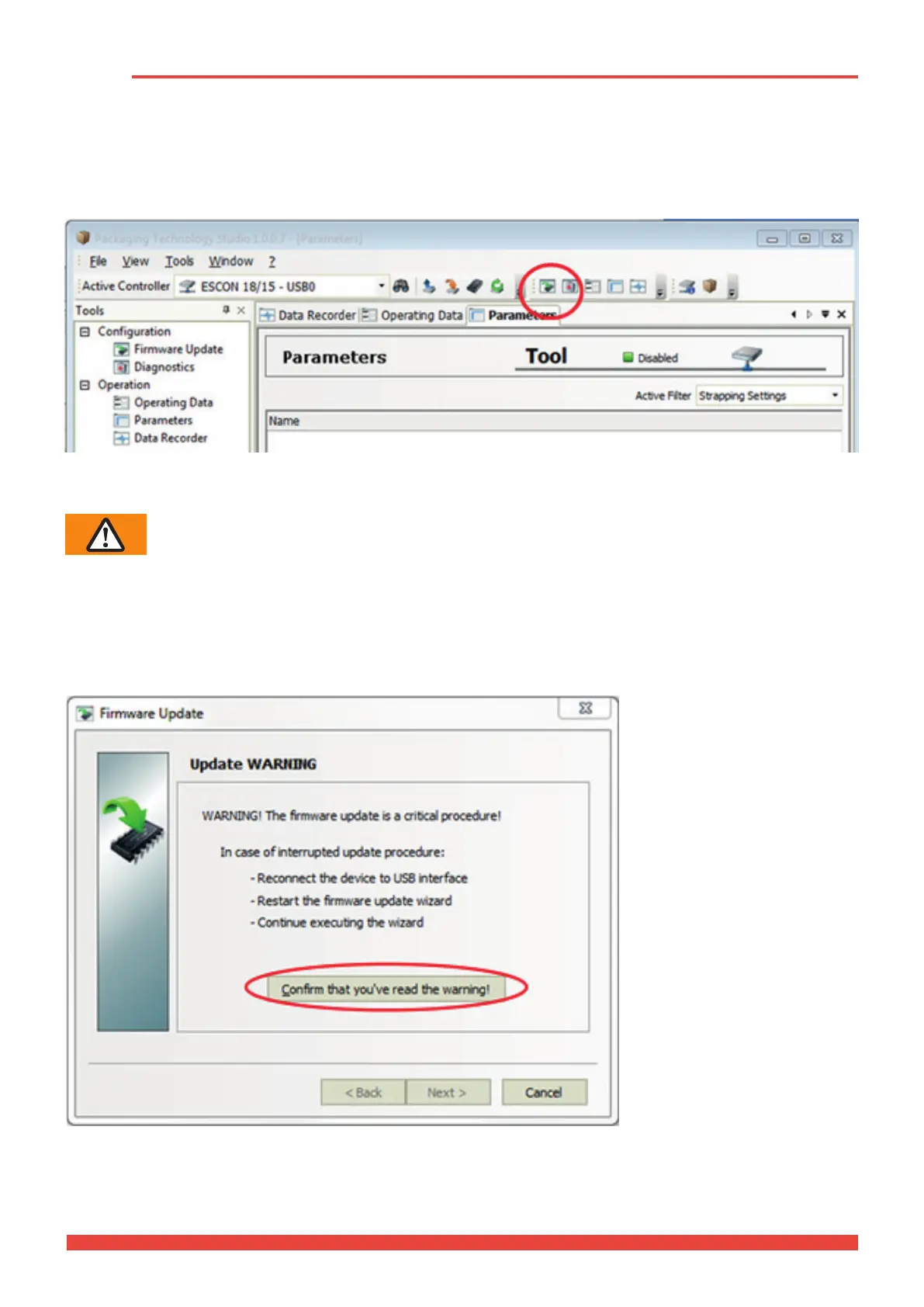 The rmware update routine is then started by clicking on the “Firmware Update” icon.