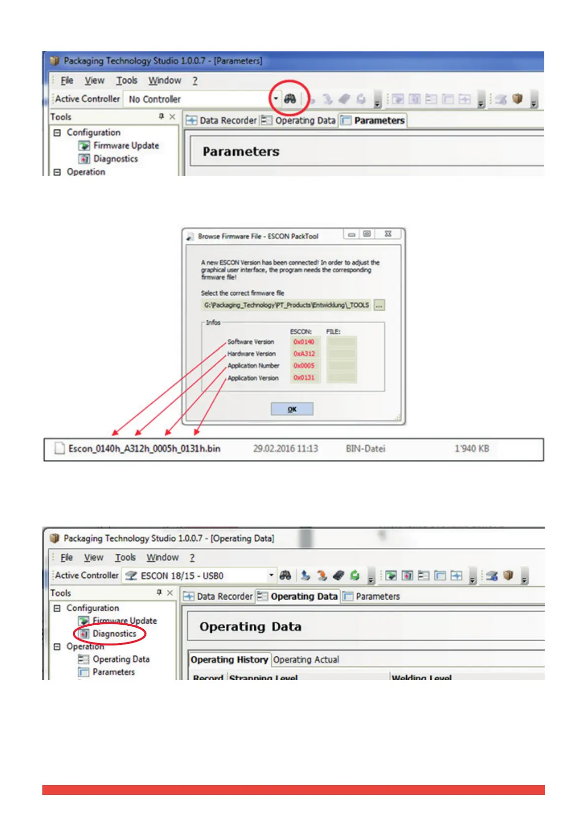 With the rst connection, PT Studio requests the rmware le loaded on the tool. This is stored in the “Packaging