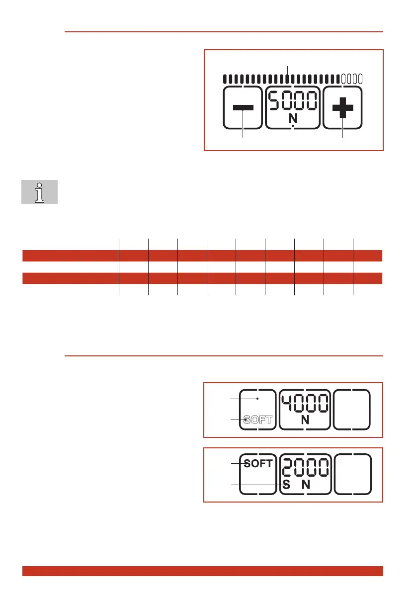 ● Switchbetweendisplayin"N"or"lbf":Presstheashing"Tensionforce"button(2)for