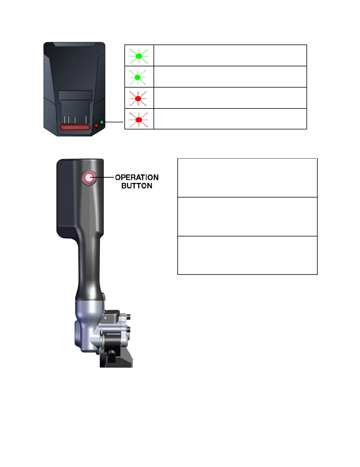 (tool will continue to operate, charged battery