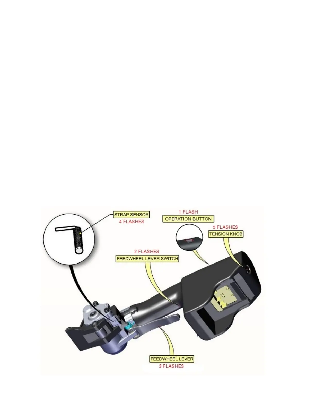 9. Lastly, remove the small piece of strap from under the feedwheel. Operation Button LED will