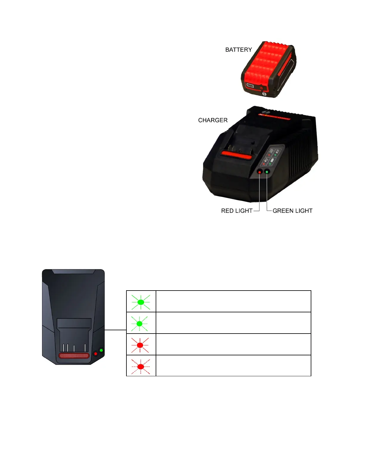 When you begin the charging process of the battery pack, a steady red light could also mean the