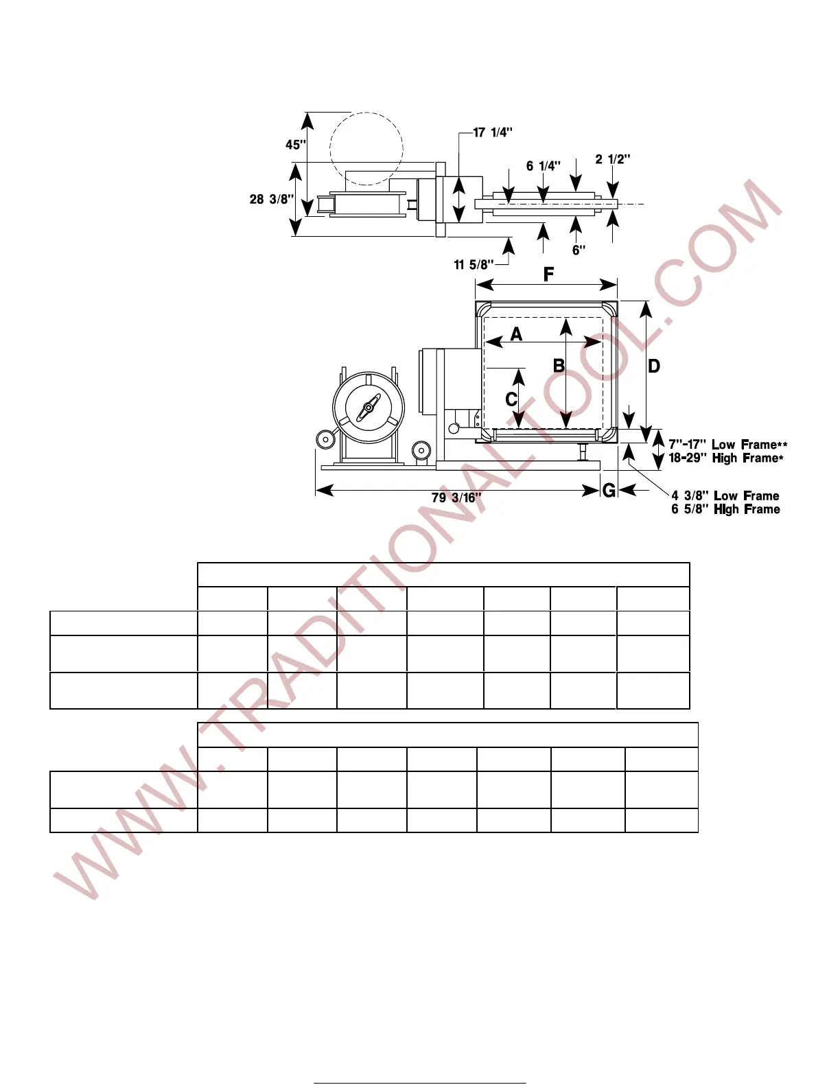 CHUTE LENGTH (F) 26 9/16" 32 9/16" 38 9/16" 44 9/16" 56 9/16" 68 9/16" 80 9/16"