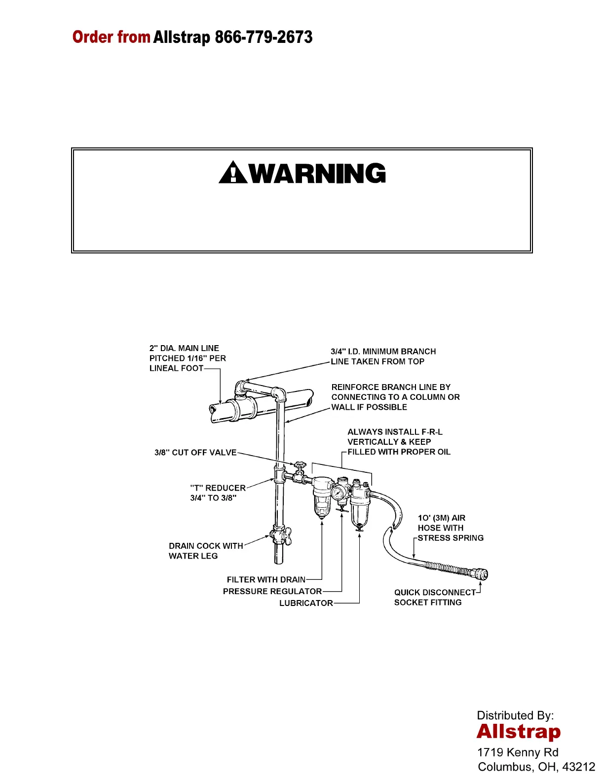 A filter-regulator-lubricator unit (Signode Part No. 008559) must be installed as close to the air tool
