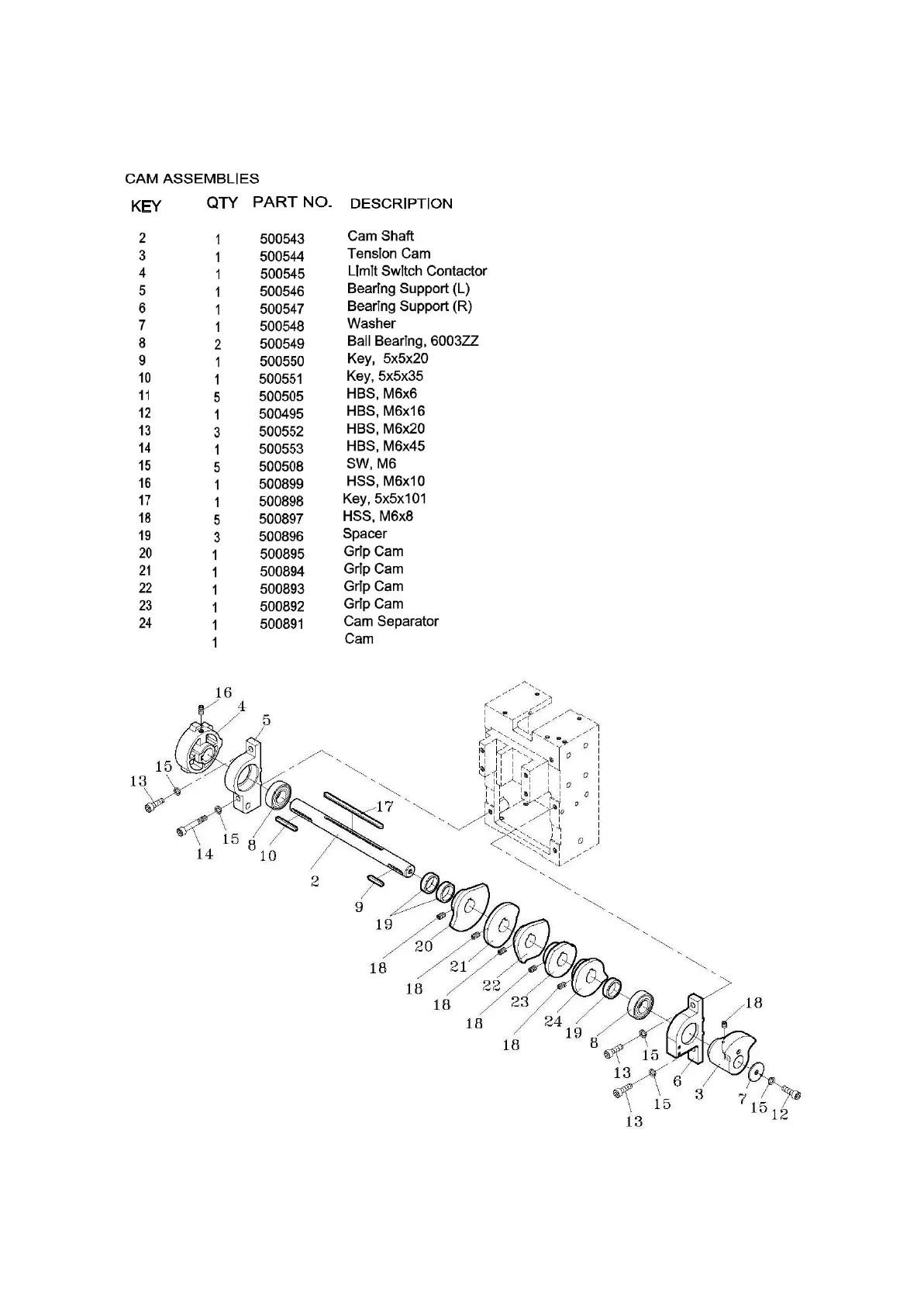 Signode TABLE-TYER - Cam Assemblies; Cam Shaft and Tension Cam; Grip Cam and Separator; Assembly Diagram