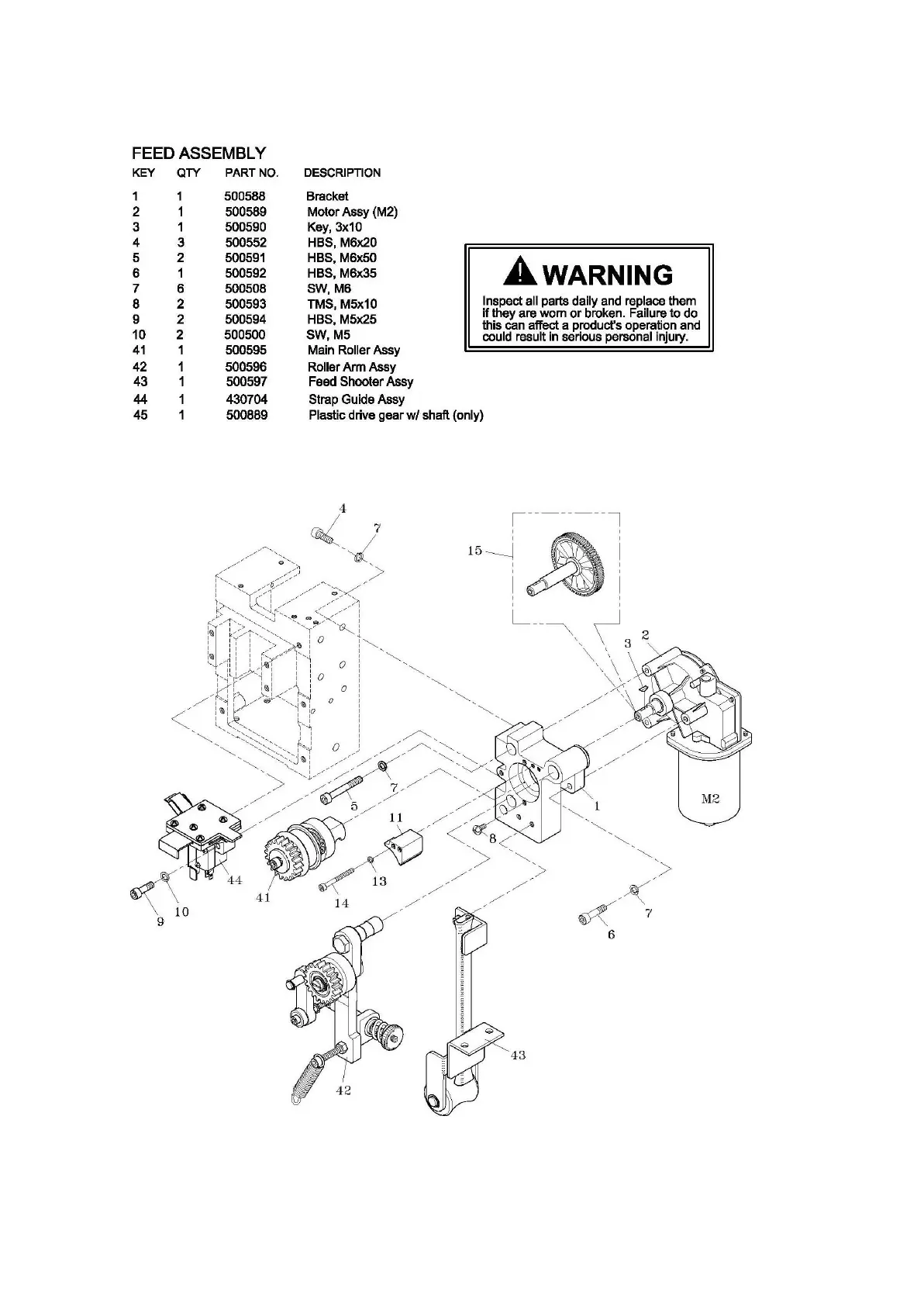 Signode TABLE-TYER - Feed Assembly; Bracket and Motor Assembly; Fasteners and Rollers; Roller Arm and Feed Shooter