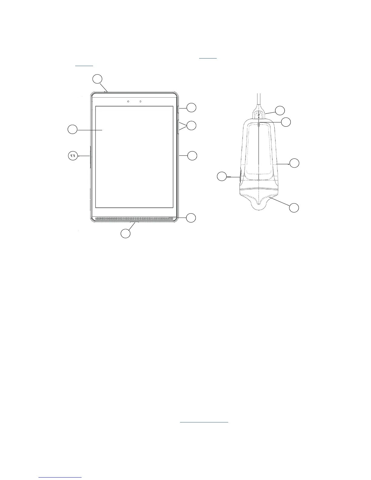 The front of the Uscan tablet display and probe are shown in Fig 1.3. The Uscan handheld display contains the