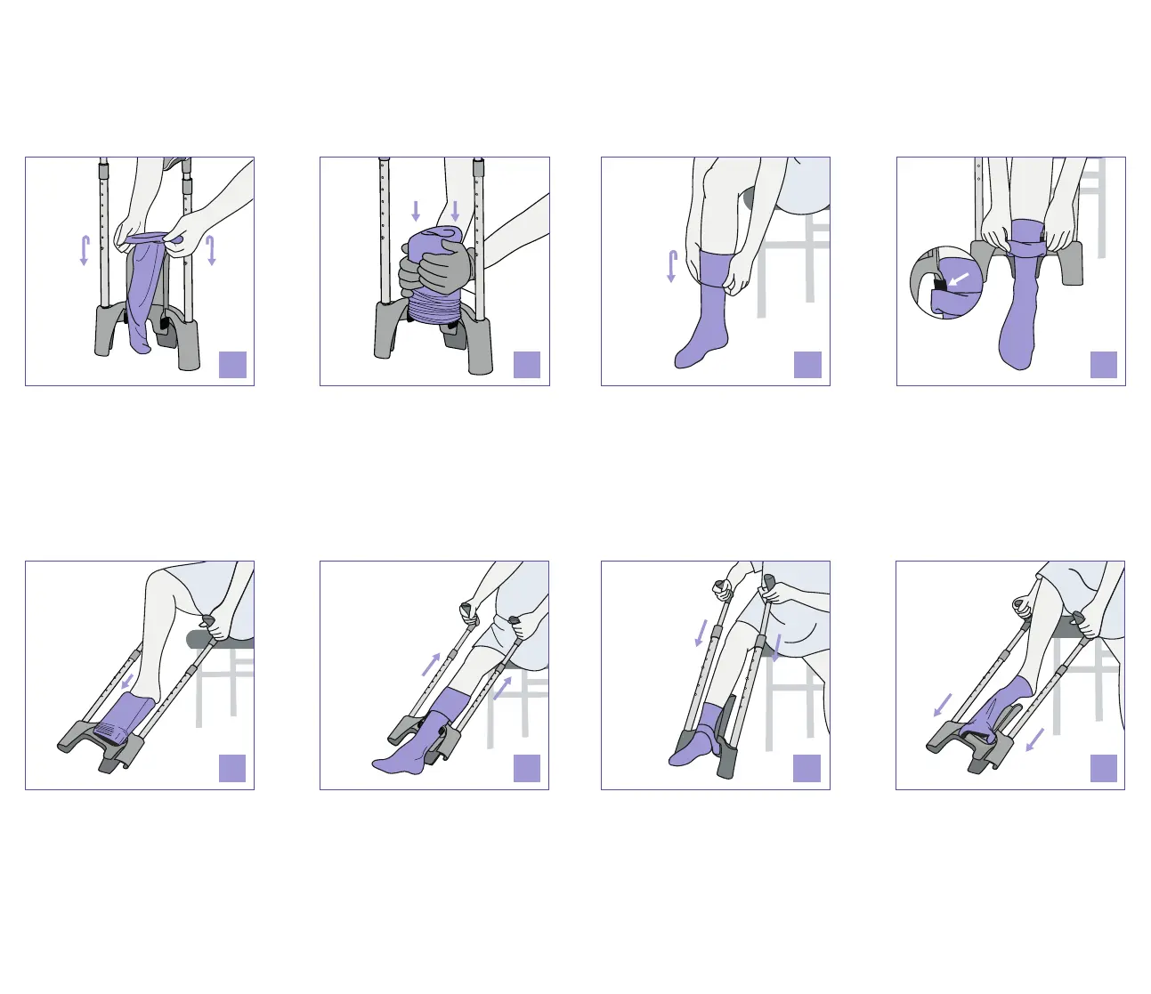 Slip into the toe tip of the stocking with your toes rst. By repeatedly pulling the stocking up, you can