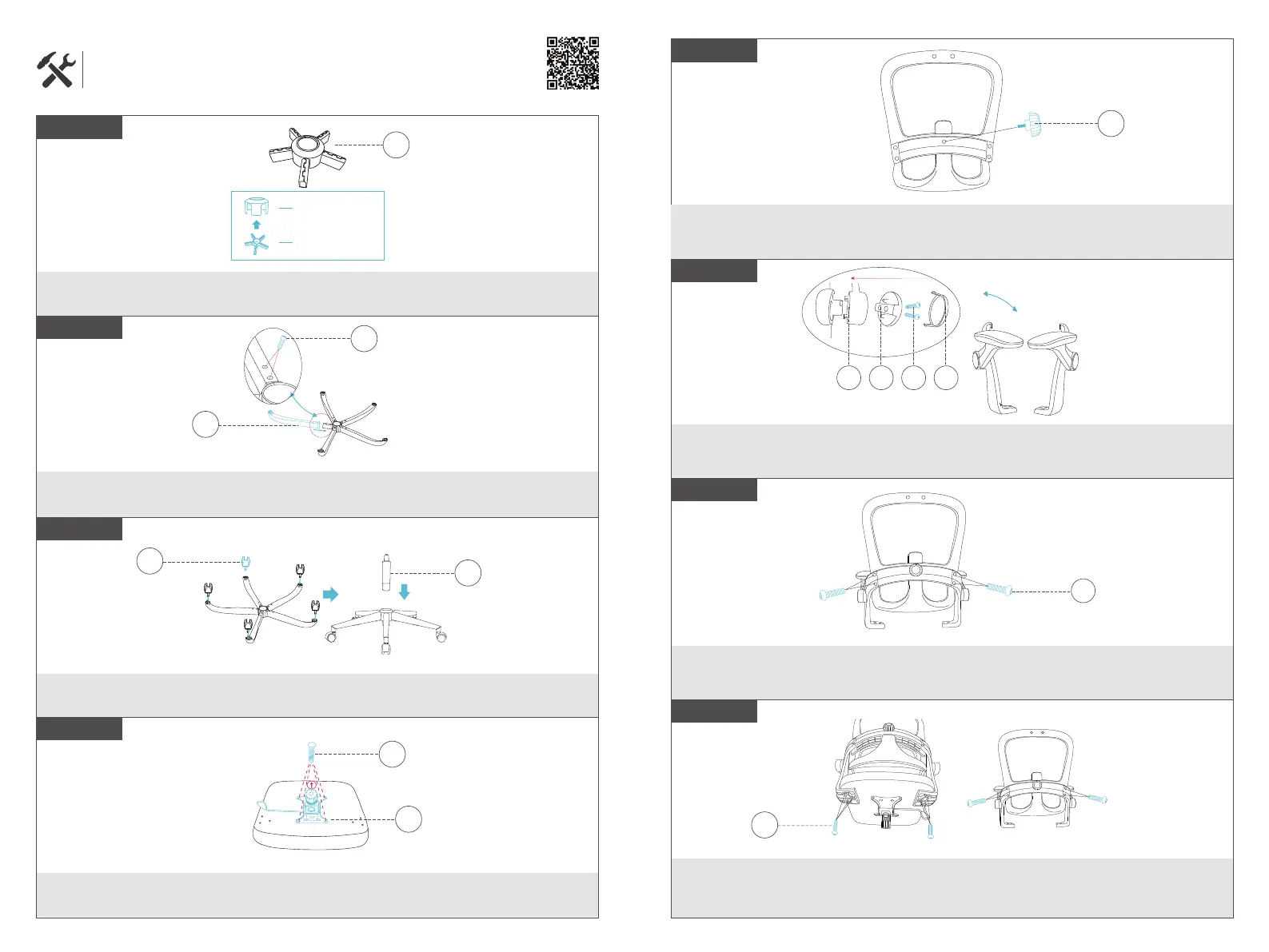 Utilisez 4 vis M6X25 pour connecter le dossier et les accoudoirs. Serrez-les dans le sens des