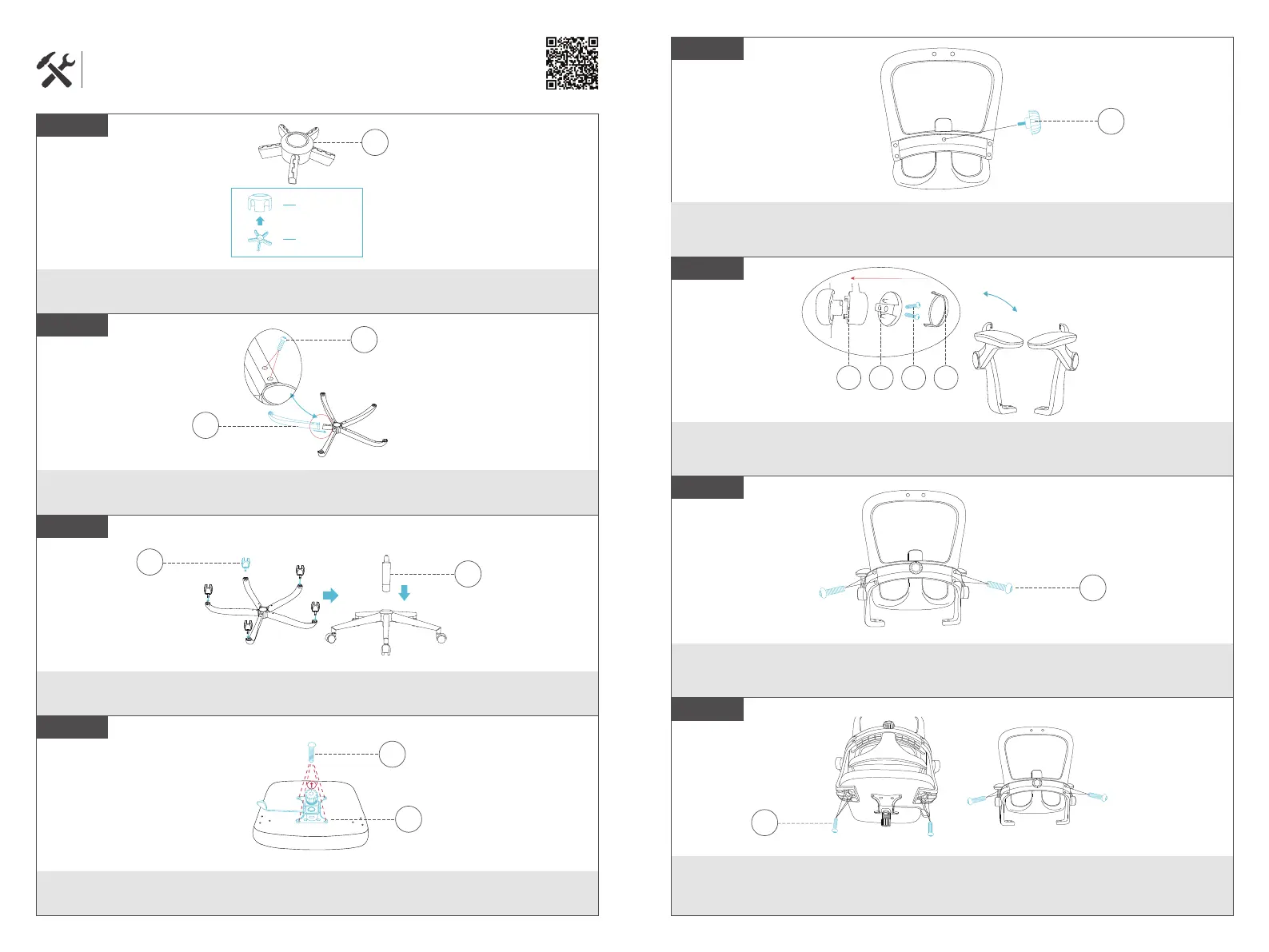 Use 4 M6X25 screws to connect the backrest and armrests. Use a wrench to tighten them