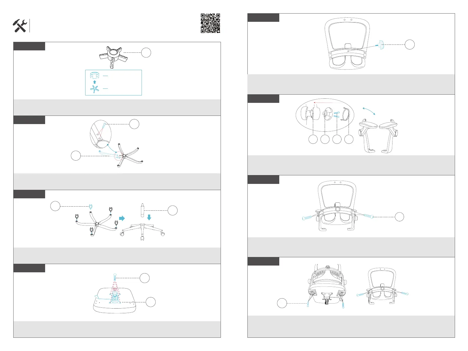 Verwenden Sie 10 M6X14 Schrauben, um die fünf Stuhlfußrohre mit der Basis zu verbinden.