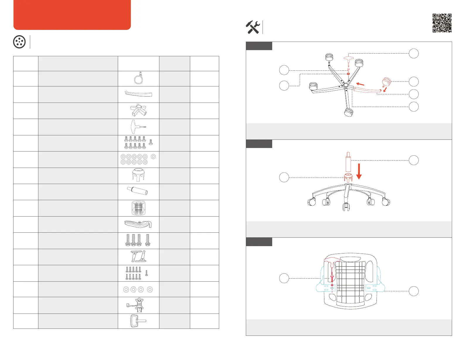 Verwenden Sie 10 Schrauben der Spezikation M6*12, um die fünf Stuhlbeinrohre an